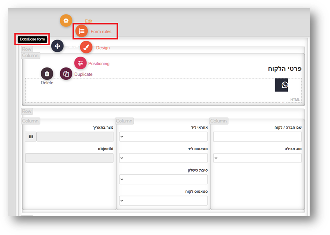 בלחיצה על- Database form יפתח תפריט, עליכם לבחור ב- Form rules .