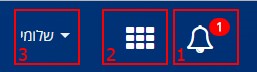הכותרת העליונה הינה קבועה וחוזרת בכל המסכים ודרכה ניתן לבצע מספר פעולות: