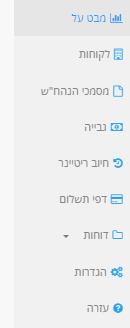 בתפריט הצד ניתן לנווט בין הלשוניות השונות – מבט על, לקוחות, מסמכים, דוחות והגדרות.
